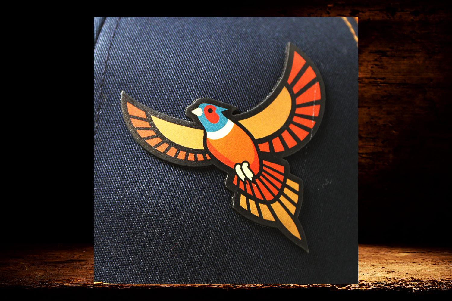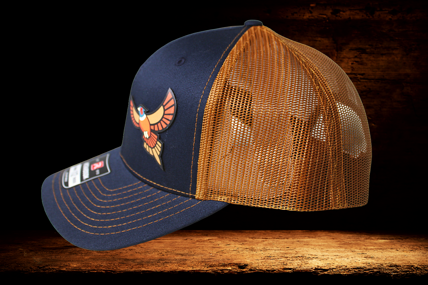 Richardson 112 navy and bronze with colorful pheasant patch